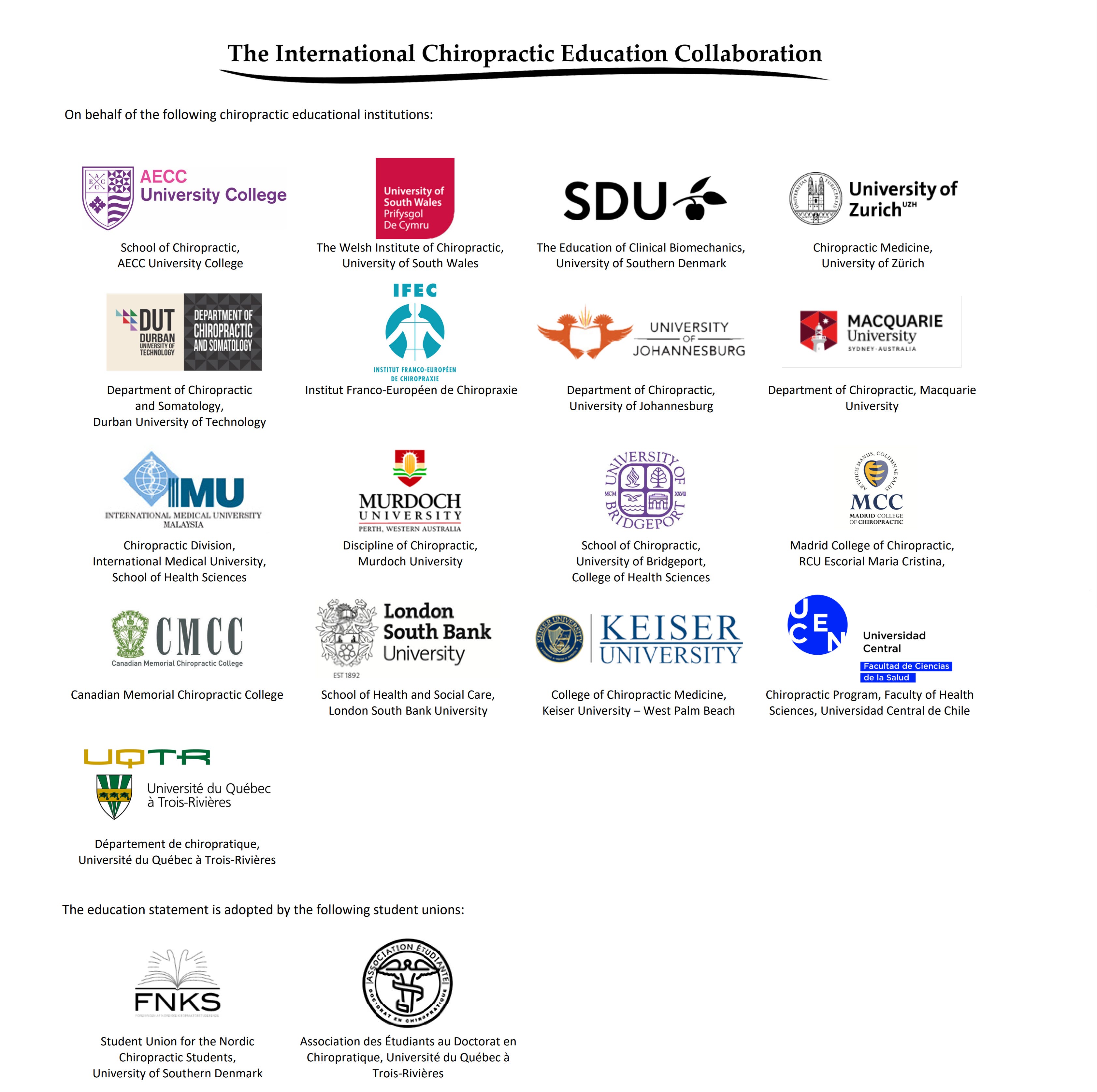 “This document is based upon and supports the theme of the World Federation of Chiropractic Educational Statement formulated in November 2014 at the Miami Education Conference.” – ICEC Preamble